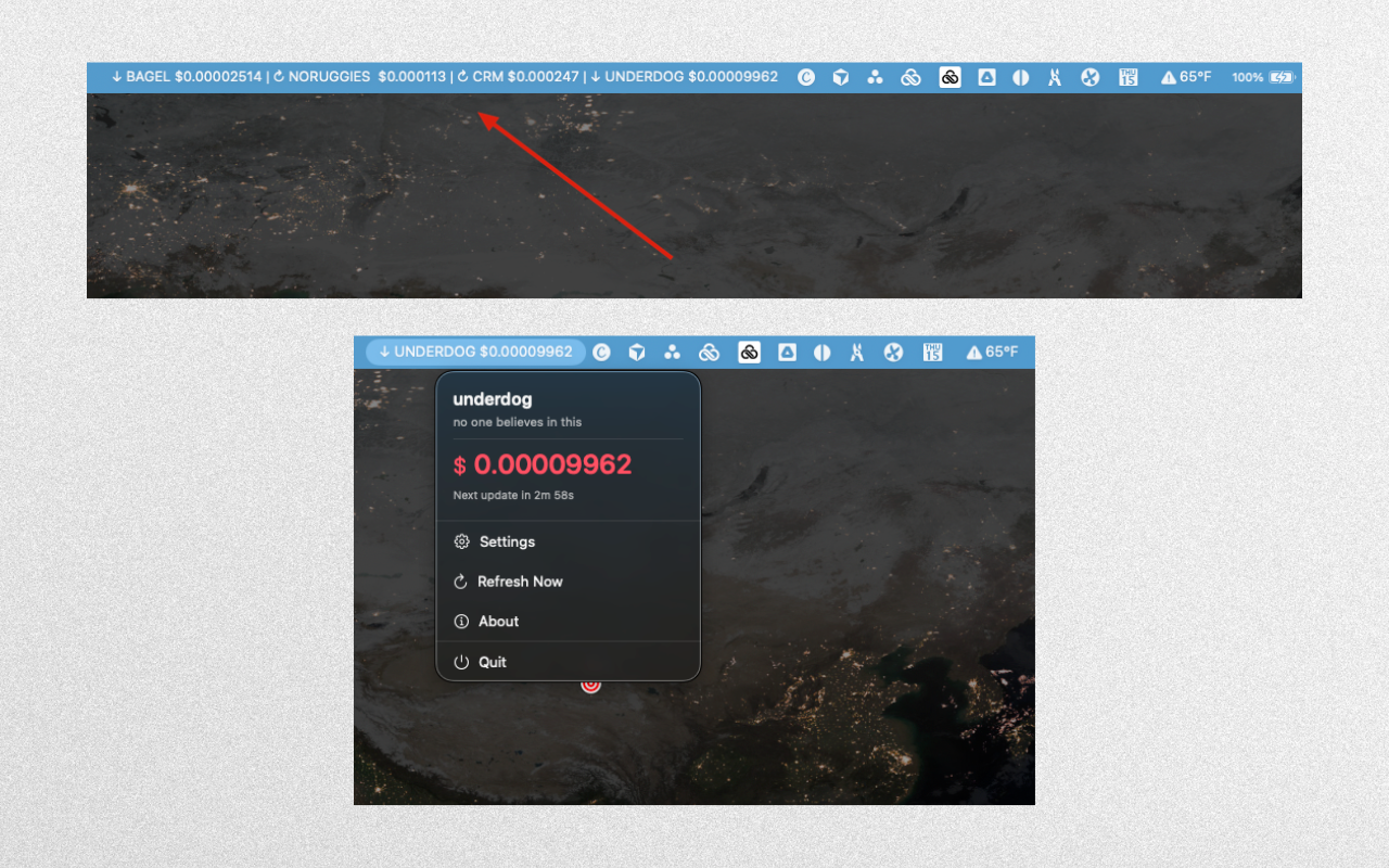 Meme Menu Bar is built for simplicity and elegance. It’s ideal for users who want awareness, not active trading tools. No alerts, no charts, no distractions—just Solana meme token prices, always visible and out of the way.